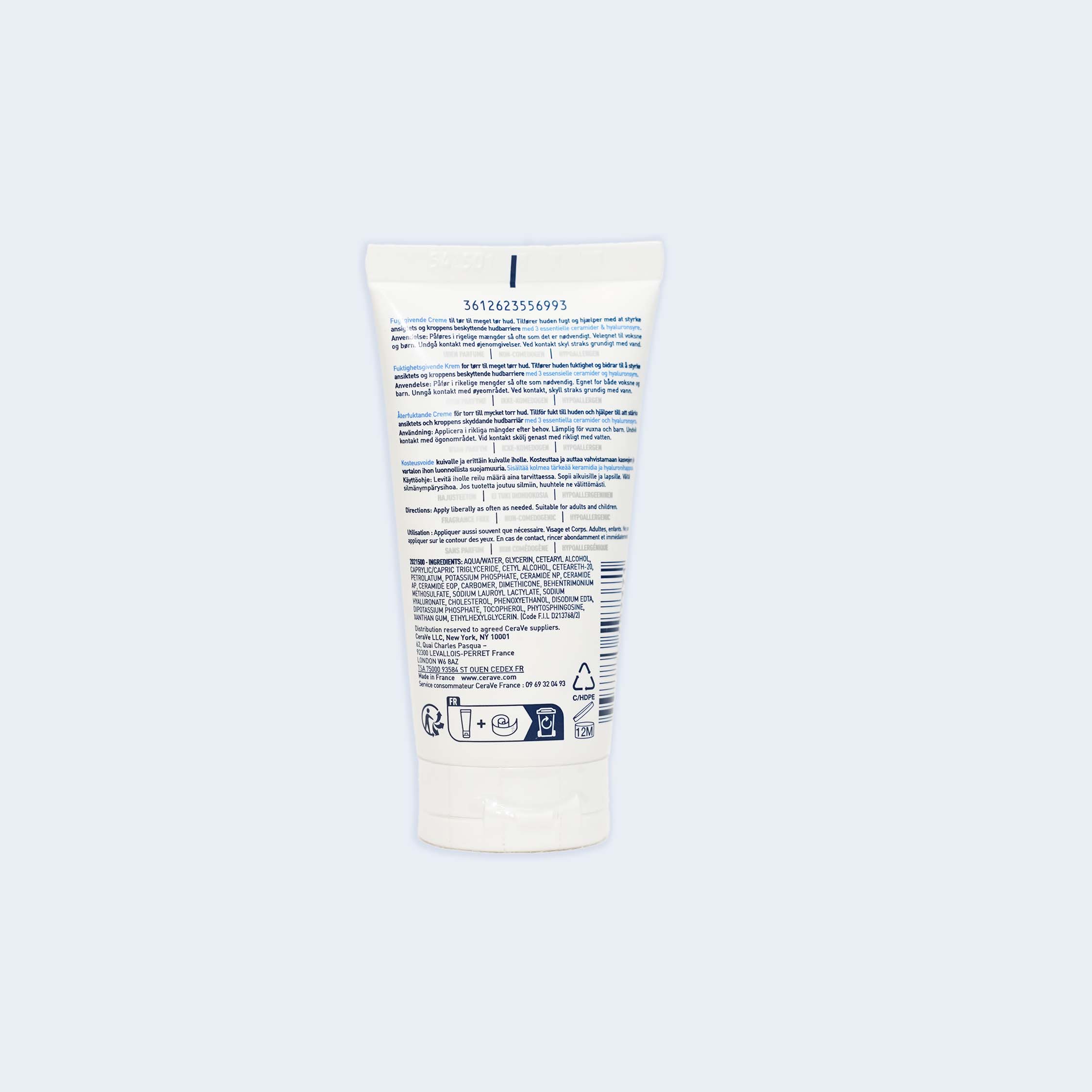 Aqua (Water), Glycerine, Cetearyl Alcohol, Caprylic/Capric Triglyceride, Cetyl Alcohol, Ceteareth-20, Petrolatum, Potassium Phosphate, Ceramide NP, Ceramide AP, Ceramide EOP, Carbomer, Dimethicone, Behentrimonium Methosulfate, Sodium Lauroyl Lactylate, Sodium Hyaluronate, Cholesterol, Phenoxyethanol, Disodium EDTA, Dipotassium Phosphate, Tocopherol, Phytosphingosine, Xanthan Gum, Ethylhexylglycerin.